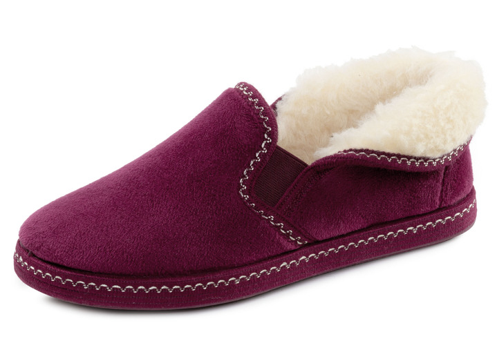 Hausschuhe - Laurina, warme Damen-Hausschuhe, mit Gummizug, in Größe 036 bis 042, in Farbe BORDEAUX
